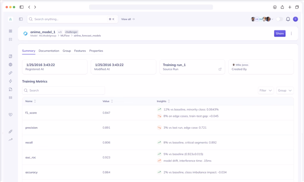 Track multiple versions of datasets and ML models with detailed performance metrics and clear linkages between versions.
