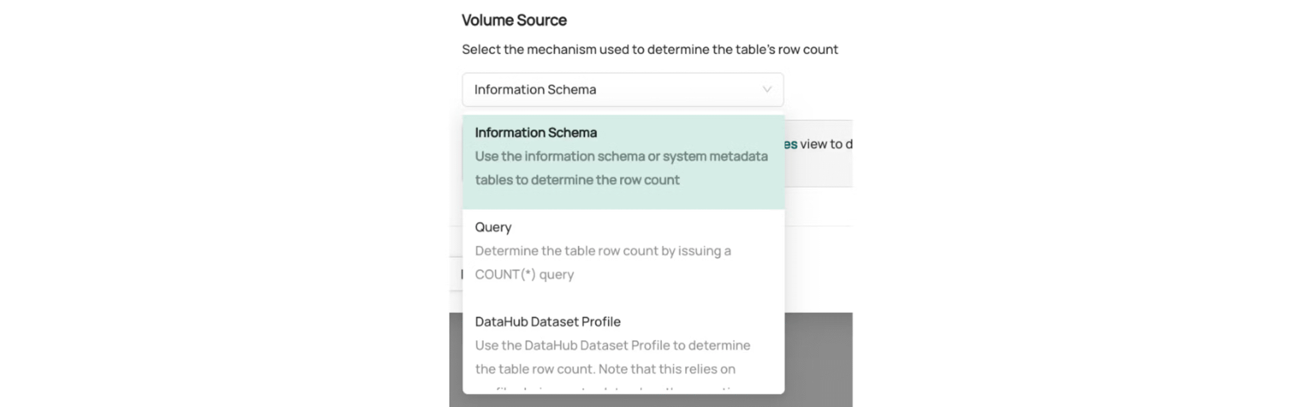 The Volume Source: This is the mechanism that Acryl DataHub can use to determine the table volume (row count).