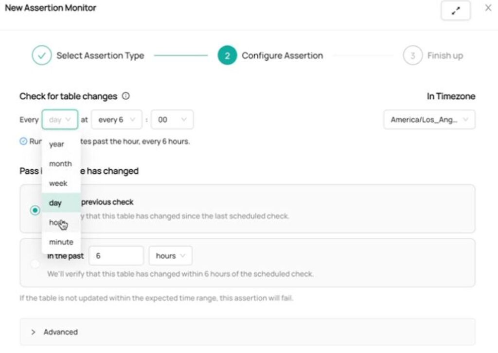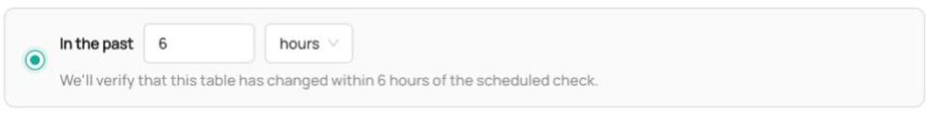 The outcome of these conversations is the Freshness Assertion—a configurable Data Quality rule that monitors your table over time to detect deviations from the anticipated update schedule.