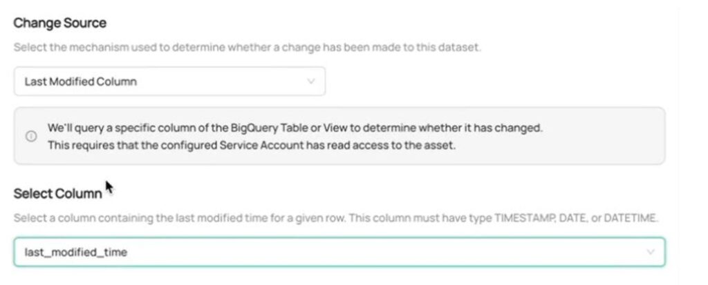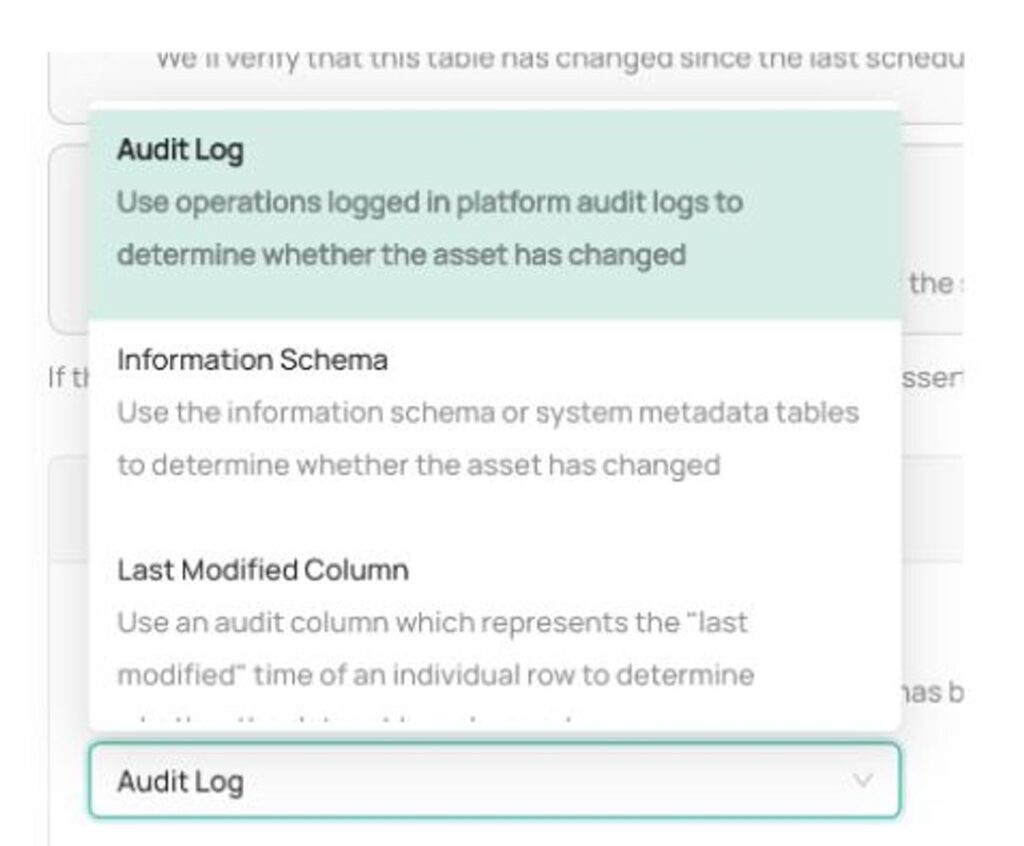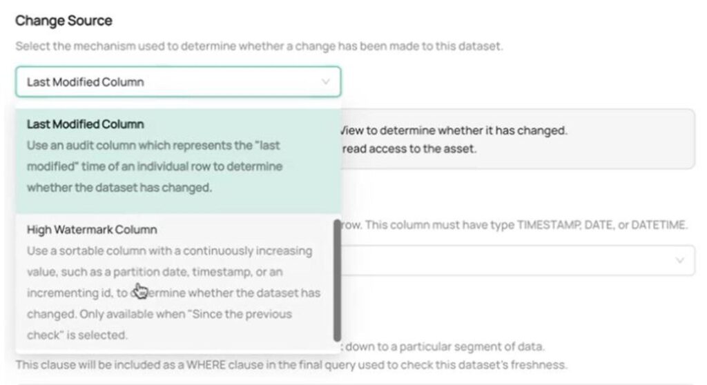 - A change source: This is the mechanism that Acryl DataHub should use to determine whether the table has changed.
