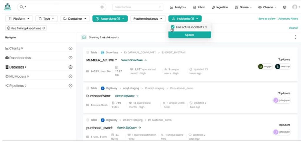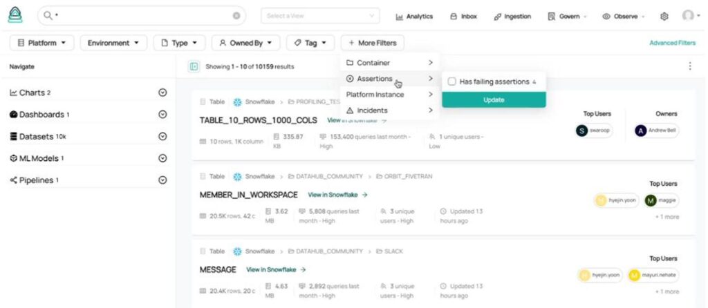 You could even use the Observe module on DataHub Acryl to surface the health issues of your assets.