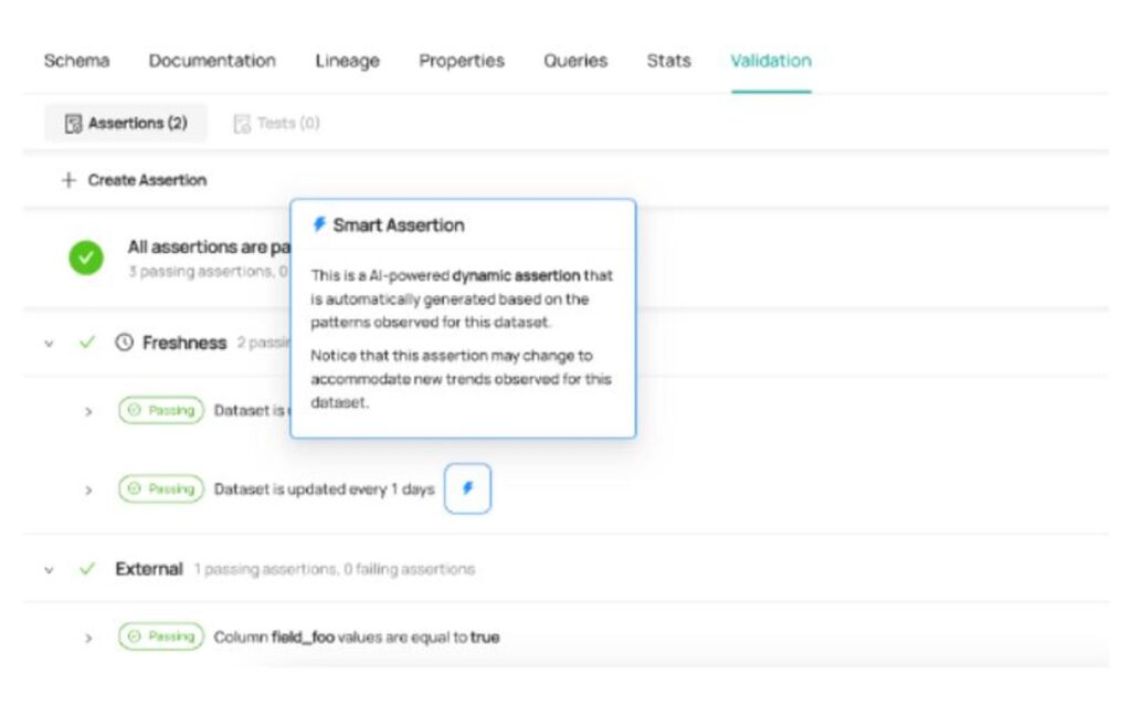 As part of the Acryl Observe module, DataHub also comes with Smart Assertions, which are AI-powered Freshness Assertions that you can use out of the box to monitor the freshness of important warehouse tables.