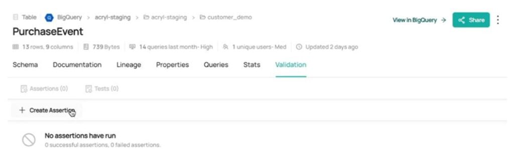 In this section, we’ll see how simple it is to set up a Freshness Monitoring Assertion for a table using the DataHub UI.